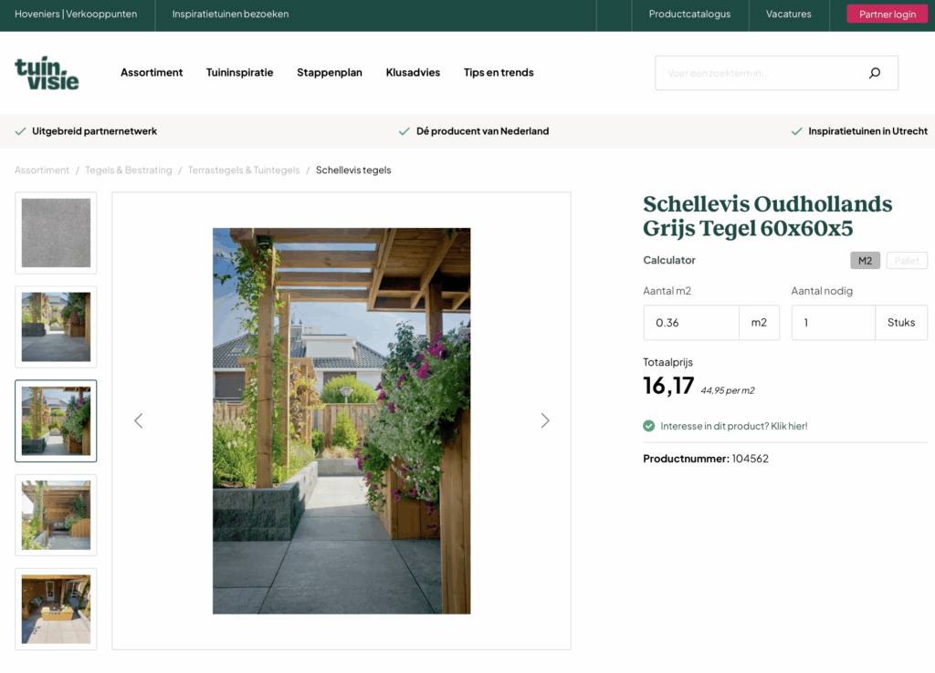 Nadat je de aanbetaling hebt voldaan, nemen we binnen enkele dagen contact met je op om een afspraak in te plannen. We meten samen je voortuin op en bespreken je wensen. Onze partner, Tuinvisie, heeft een groot assortiment waaruit je de materialen kiest die je mooi vindt met maar liefst 20% korting*.