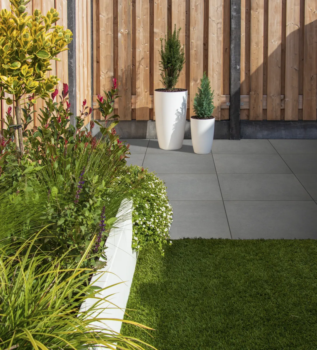 Gebruik de Tuinvisie calculator om het aantal benodigde tegels te berekenen. Vul het aantal m ² in en de calculator rekent voor je uit hoeveel tegels je nodig hebt. Bepaal vervolgens de voegbreedte. Een smallere voeg creëert een strakker uiterlijk, terwijl een bredere voeg een meer landelijke uitstraling geeft. Voordat je terrastegels gaat leggen, is het belangrijk om te zorgen voor een stabiele en vlakke ondergrond. Houd hierbij rekening met afschot van ongeveer 1 centimeter per meter.