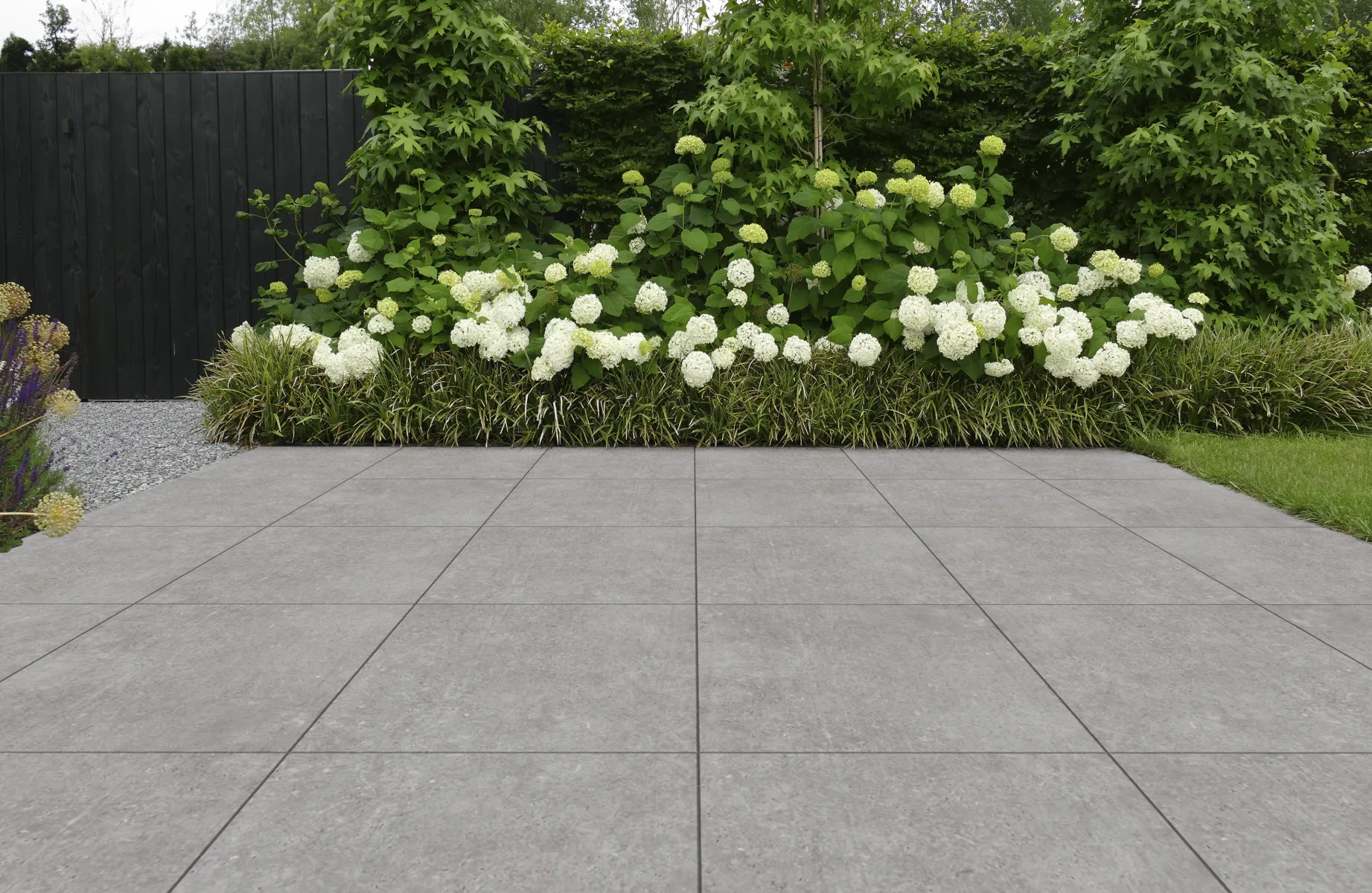 De Ceramiton Atlas serie in het formaat 60x60x4 cm heeft een gietbetonlook in zachte grijstinten. Deze serie is verkrijgbaar in 3 kleuren en dankzij de variatie in nuancering en tekening krijgt de tuin een natuurlijke en unieke uitstraling.