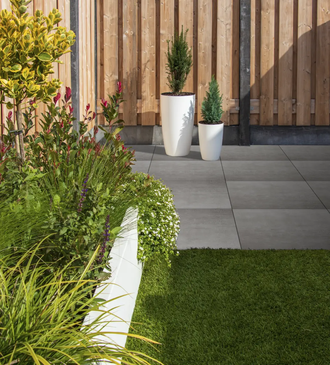 De Ceramiton Onyx serie in het formaat 60x60x4 cm heeft een betonlook met zachte nuances en is verkrijgbaar in 3 kleuren. Dankzij de variatie in nuancering en tekening krijgt de tuin een natuurlijke en unieke uitstraling.